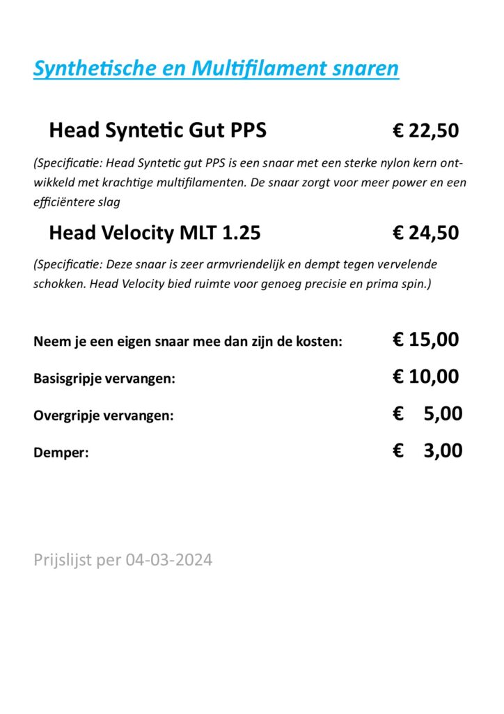 Voor bespannen, grips, ballen en advies over uw snaren